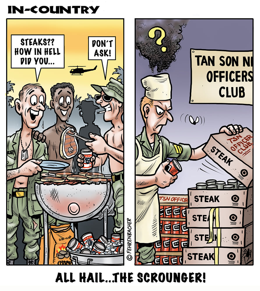 Phil enlisted in the Army in 1965 where you served for years in Vietnam. He became a graphic designer and has worked for the state of Oregon for 26 years. He retired in 2003 and started the Cartoon "In-Country". The cartoons reflect his experiences during his tour of duty in South Vietnam.